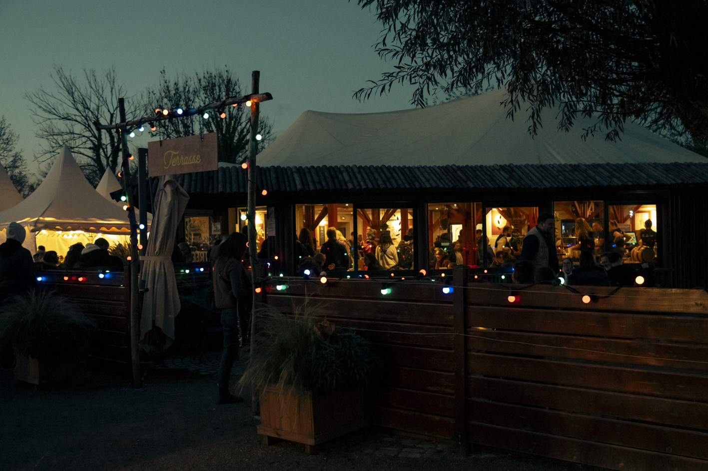 • boissons et petite restauration avec une carte 100% locale : bières*, cocktails*, terrines, tarninables, fromages, saucissons, chips,...